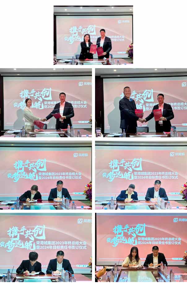 為總結(jié)2023年來的成績與收獲,展望未來戰(zhàn)略愿景,2024年2月2日上午,榮港城集團(tuán)召開2023年終總結(jié)大會暨2024年目標(biāo)責(zé)任書簽訂儀式。榮港城集團(tuán)董事長王明軍、集團(tuán)副總經(jīng)理王麗娟及各部門負(fù)責(zé)人現(xiàn)場參加會議。會議由集團(tuán)綜合行政部經(jīng)理楊俊蓉主持。